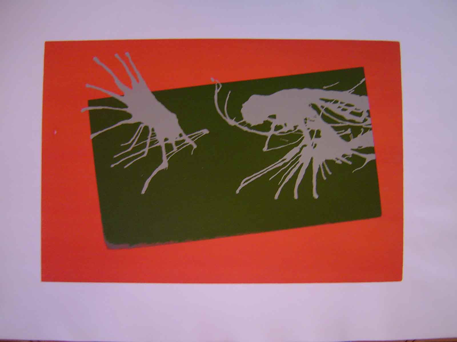 En el contexto del grabado, serigrafía es una técnica de impresión que consiste en transferir tinta a una superficie (papel, tela, madera, etc.) a través de una malla tensada (generalmente de seda, poliéster o nylon), que actúa como una especie de plantilla o esténcil. Las zonas de la malla que no deben imprimir se bloquean con una emulsión impermeable, mientras que las zonas abiertas permiten el paso de la tinta.